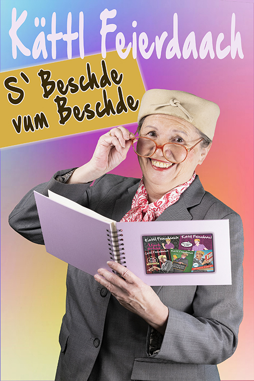 Viele Jahre steht Kättl Feierdaach nun schon auf der Bühne und unterhält das Publikum mit ihren Erlebnissen, die meist kurios, lebensnah und immer sehr unterhaltsam sind. Sie lässt die Menschen an ihrem Leben teilhaben, ob sie wollen oder nicht. Ihr Mann, genannt Moiner und ihre beste Freundin Hannelore sind treue Wegbegleiter und haben schon für so manchen Lacher gesorgt. Kättel erzählt hautnah und leidenschaftlich von Erlebnissen im Wellnesshotel, von gemeinsamen Urlauben oder von den Meinungsverschiedenheiten mit ihrem Mann.